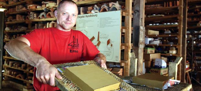 sondern macht das Handwerk jedem Besucher anschaulich. Wie vor über hundert Jahren werden nach dem Handstrichverfahren, einer historischen Technik der Ziegelherstellung, Formziegel in Handarbeit hergestellt. Nach alter Tradition trocknen diese dann in einem Trockenschuppen und werden anschließend in einem historischen Zick-Zack-Ofen gebrannt. Die so gefertigten Ziegel sind individuell in Farbe und Struktur und kommen vorwiegend bei der Denkmalpflege zum Einsatz. Immer wieder schön anzusehen ist der Brennvorgang in der Dunkelheit – wenn rotglühende Flammen den Meiler durchziehen und romantisches Flair verbreiten. Als Höhepunkt können in der Grobkeramikwerkstatt eigene Kreationen geformt, getrocknet und gebrannt werden. Das macht Spaß und bringt eine schöne Erinnerung zum Mitnehmen. Die Ziegelei ist Teil der „Straße der Technik“, zu der weiterhin unter anderem in Magdeburg Technikmuseum und Schiffshebewerk Rothensee gehören, das Gradierwerk in Schönebeck, die historische Gerberei in Burg und das Pretziener Wehr.