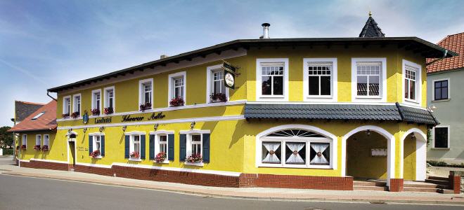 Weitere Zeugen der Vergangenheit sind zum Beispiel die drei Taubentürme, welche mehr als 250 Jahre alt sind. Einer dieser Türme ist auf dem Grundstück des Landhotel „Schwarzer Adler” zu finden, sogar in Verbindung mit einer Taubenwand, was auch früher schon sehr selten war. Das Landhotel erstreckt sich über insgesamt drei Höfe und Gärten und nutzt geschickt die bestehende historische Architektur der Bauernhöfe. Im Jahr 1993 wurde der damalige „Ausspann“, der alte Dorfkrug von 1734, gemeinsam mit einem angrenzenden Vier-Seiten-Hof zu einem komfortablen Hotel und Restaurant umgebaut. Die Betreiberfamilie verstand es, die klassischen Vier-Seiten-Höfe vollständig zu erhalten, und so finden sich auf der gesamten Anlage immer wieder raffinierte Ecken und viele Räumlichkeiten, die zum Verweilen und Entspannen einladen. Einmal im Jahr, zur Zuckerrübenkampagne, wird im Rahmen der Süßen Tour eine Reise auf den Spuren des „Weißen Goldes“ veranstaltet. Hier kann man auf anschauliche Weise an weiteren Stationen die Bedeutung des Zuckerrübenanbaus und der sich daraus entwickelnden Industrie erleben. Natürlich gibt es auch in der Umgebung des Dorfes lohnende Ausflugsziele, allem voran das Naturschutzgebiet „Sülzetal”. Dieses ist nur zwei Kilometer entfernt und wunderbar mit dem Fahrrad oder zu Fuß zu erreichen. Hier erwartet Sie eine der größten und wertvollsten Binnenlandsalzstellen Deutschlands, mit besonderer Flora und Fauna. Aber auch die Naturschutzgebiete „Großer Bruch”, ein ehemaliges Sumpf- und Moorgebiet sowie das „Hohe Holz” mit seinem umfangreichen Baum- und Pflanzenbestand, laden den Besucher zum Spazieren und Verweilen ein. Ein Abstecher von der Straße der Romanik lohnt also auf jeden Fall, viele kleine und Große Schätze warten darauf, von Ihnen entdeckt zu werden!
